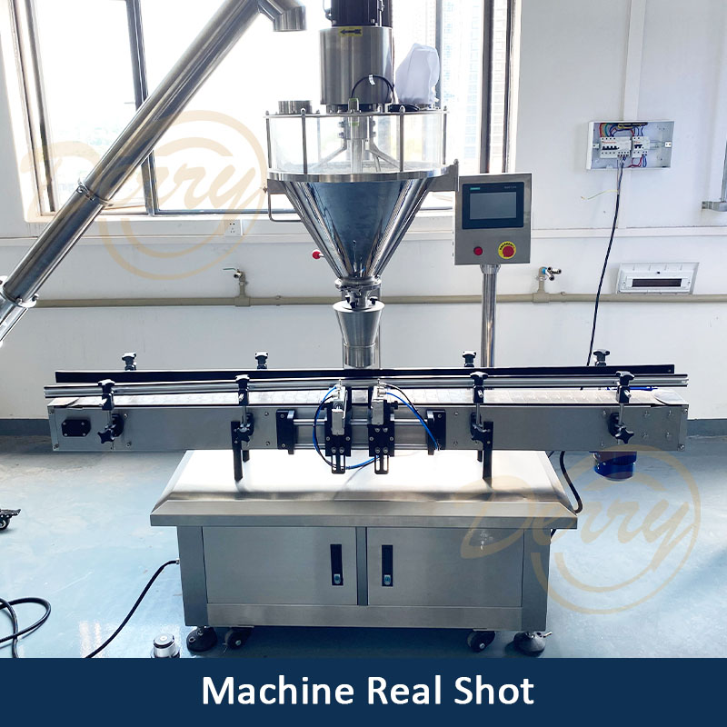 The automatic powder filling machine is suitable for filling coffee powder, milk powder, matcha powder, flour, corn flour, chili powder, protein powder, meal replacement powder, fruit powder and so on. It can be used for filling bottles and cans of various materials and shapes.